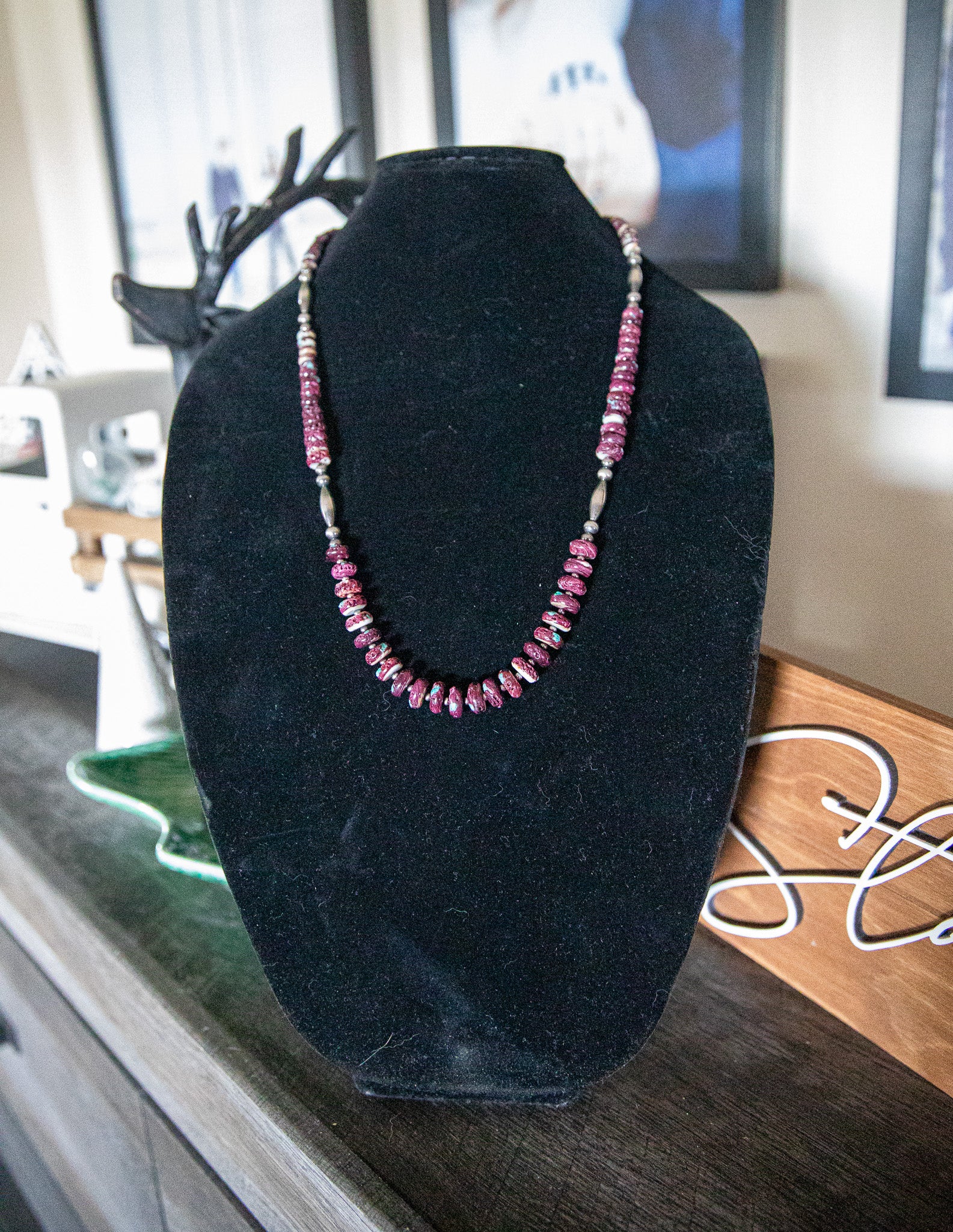 25-27 Inch 4-6MM Sterling Pearl and Torpedo & Purple Spiny Turquoise Inlay Necklace